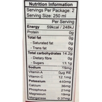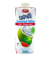 椰水(94.9%), 新鮮西瓜汁(5%),天然水果調味,維他命C